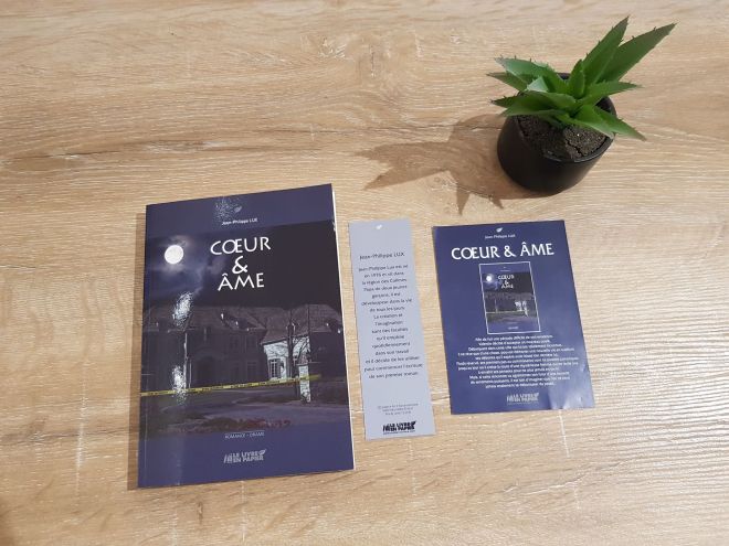Le samedi 03 août, je me suis rendue pour la première fois à la « Nuit du Livre » de Redu. Et c’est là que j’ai croisé la route de cet auteur. Je me suis donc arrêtée tout prêt de son stand afin de lire le résumé de son roman présent sur une affiche derrière lui. Mais, il m’a devancée et à aussitôt proposé de me présenter lui-même ses romans. Autant vous le dire, c’est une initiative qui m’a fait TRÈS plaisir (tous les auteurs ne font pas cela malheureusement …). De plus, il n’a pas fait que me présenter ses ouvrages, il m’a également expliqué un peu sa « façon de faire » si je puis dire et je trouve que c’est quelqu’un de très original. Par exemple : chacun de ses romans à SA couleur bien précises pour les dédicaces 🙂 Ou encore ce concours qu’il avait organisé sur sa page Facebook, le gagnant remportait un personnage à son nom et à son image dans la suite de « Coeur & Âme » ainsi que son nom dans les remerciements ! Ce n’est pas tout les jours que nous voyons de tel concours sur les réseaux sociaux. J’adore cette façon de faire les choses comme personne ne les fait, c’est très original !